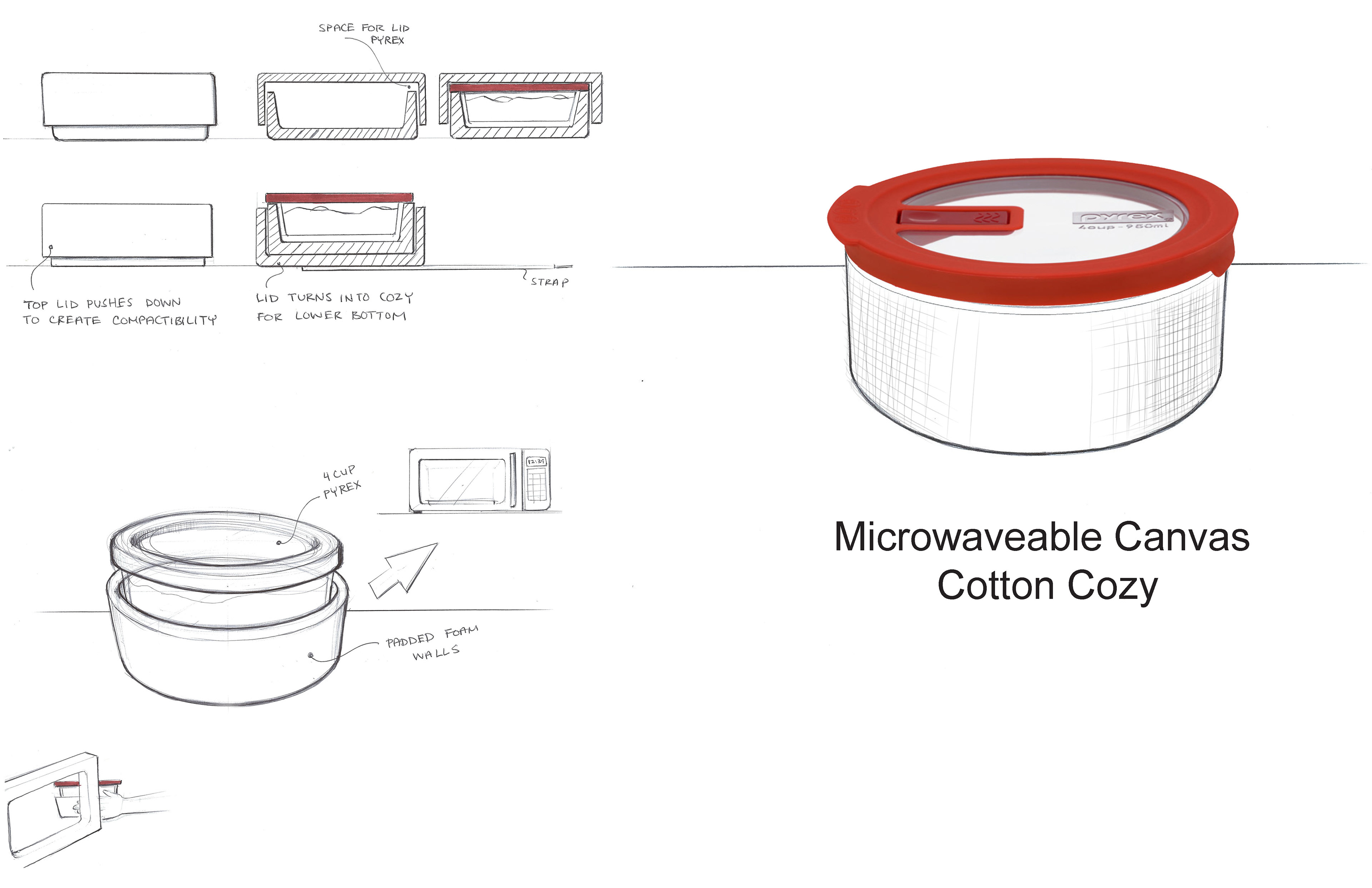 At the close of my internship, I presented three tote concepts to the Corelle team -- each exploring unique closures, aesthetics, and handling methods. I also proposed a microwaveable ‘cozy’ concept to prevent burns after heating the glass containers.