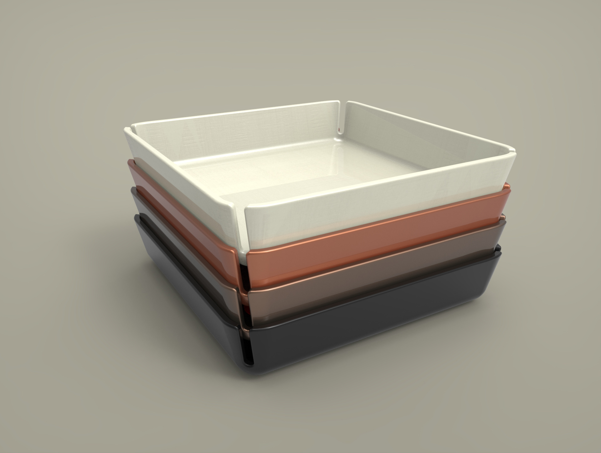 My inspiration for this storage solution came from an unlikely source: ashtrays; especially Mid-century Modern designs. Though ashtrays aren't relevant these days, I saw an opportunity for the notches on the rim to be put to use for another purpose. I then changed the shape of the tray to a more accommodating form factor: a square.