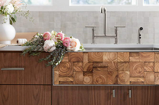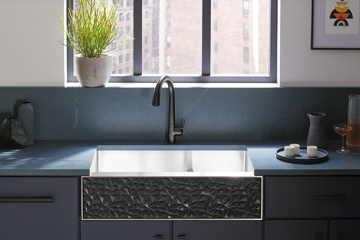 With the patented Tailor™ carrier bracket system, the apron inserts can easily be changed out to match a kitchen refresh or updated design. Tailor’s 4-gauge steel apron has KOHLER’s proprietary Self-Trimming design for improved installation and is offered in three size configurations.