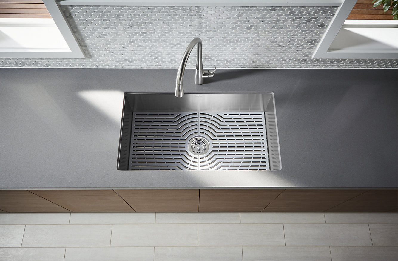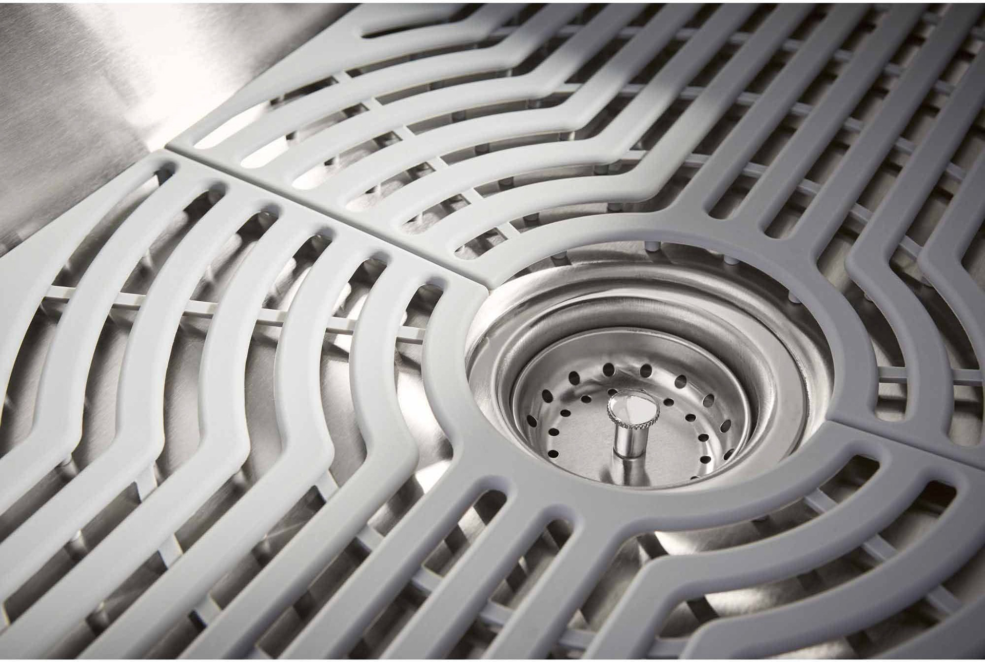 A thoughtful design process went into the pattern development for the silicone mats as the final design had to be one that was accommodating and slightly forgiving when adjusting it to fit across the span of 4 sink configurations with various bowl widths + depths.