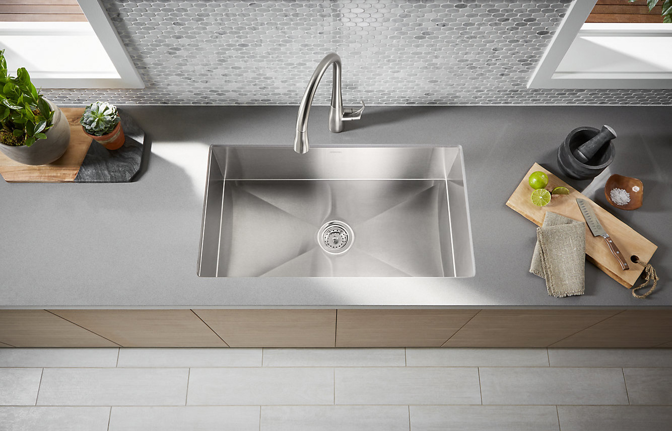 Sterling (a Kohler brand) serves both retail home improvement and builder/new construction channels. Historically, Sterling stainless steel kitchen sinks were exclusively deep-draw formed; resulting in their ubiquitously characteristic bowls with large interior radii.